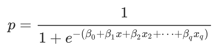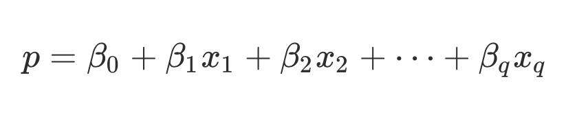 multivariate linear regression: 변수가 여러 개(x1 ~ xq)일 때 변수 간의 linear combination을 통해 확률 p를 계산