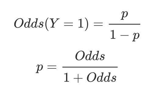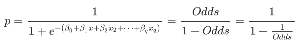 odds: success와 nonsuccess 간의 비중. logistic function을 odds에 대한 식으로 표현할 수 있다.